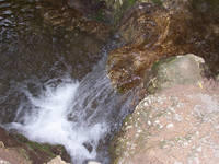 Epta Piges, die sieben QuellenMan sollte besser sagen, die sieben Rinnsale, denn vielmehr sind die 7 Quellen auch nicht. Die Wassermaseen sind so unscheinbar, dass sie mit kleinen bis sieben durchnummerierten Holztafeln gekennzeichnet wurden. Das Quellidyll wird leider zu allem Überfluss von einem direkt angrenzenden Restaurant gestört, auch wenn hier zumindest versucht wurde, mit viel Holz die natürliche Atmosphäre aufrecht zu erhalten. Na ja, jeder reißende Strom hat mal klein angefangen, und so erfreut sich der doch etwas enttäuschte Pauschaltourist an der schattigen Waldlandschaft, in der man zumindest entspannt spazieren gehen kann. |